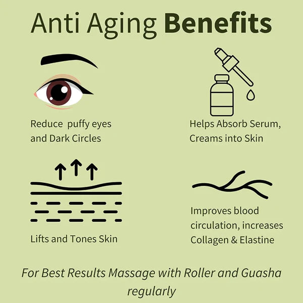 The Gua Sha and roller help serums, oils, and moisturizers absorb more effectively into the skin, enhancing the benefits of your skincare routine.