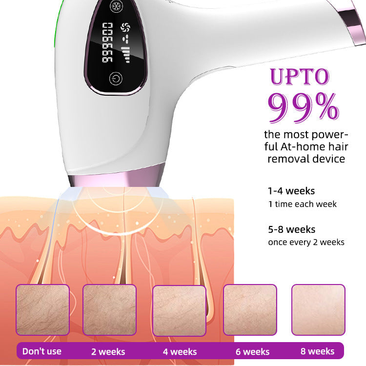- VISIBLE RESULTS IN JUST 6 SESSIONS: The Semino laser hair removal utilizes advanced IPL technology, emitting infrared light at 600nm-1200nm to target hair follicles and deactivate melanin, preventing hair regrowth. Clinical tests show that 80% of users achieve a 94% reduction in hair after 7-8 sessions, with complete results in 8 weeks. Follow up with maintenance treatments every 2 months for long-lasting smoothness