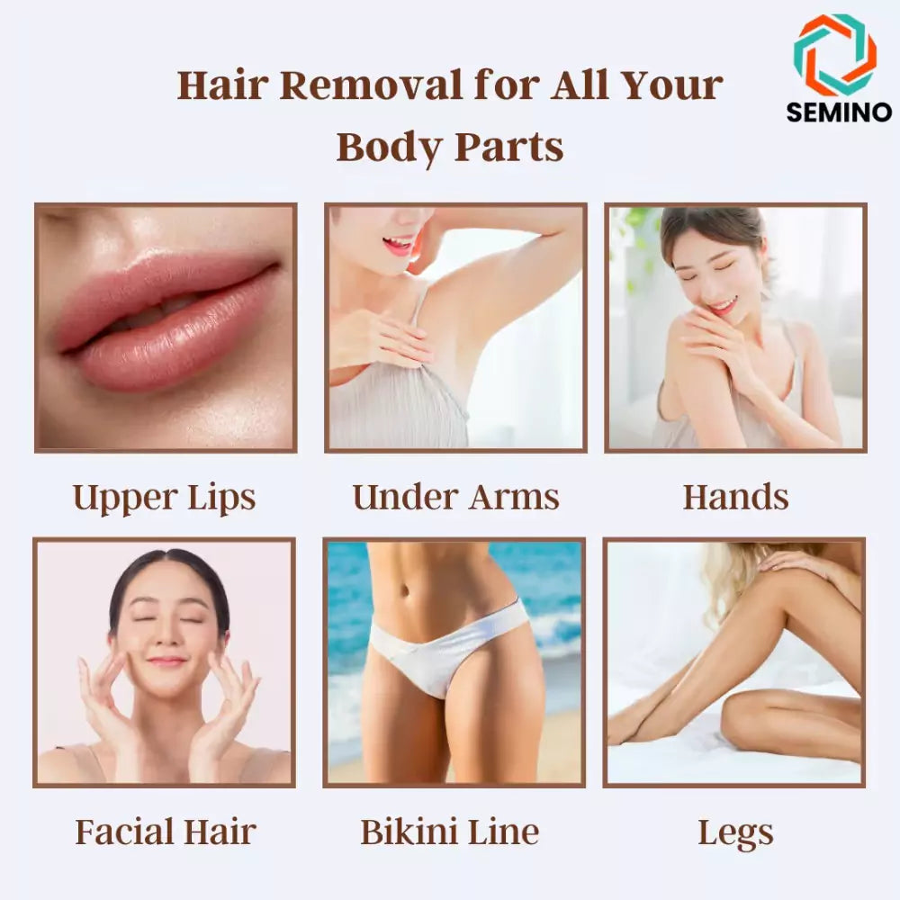 Suitable for all areas of the body, including the face, arms, legs, underarms, and bikini area, ensuring versatility in hair removal.
